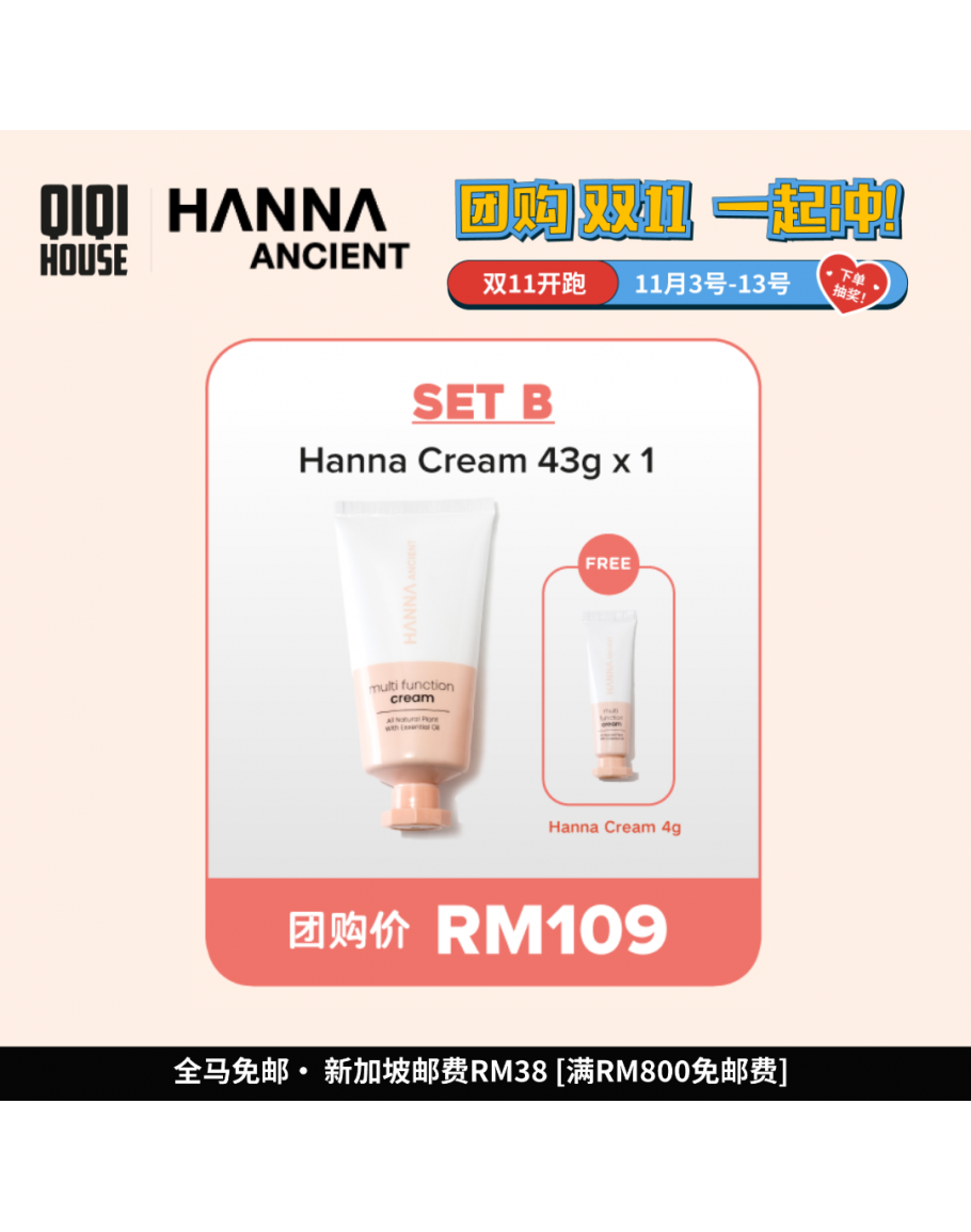 HANNA Multi Function Cream –【SET B】 43gm x1 Free Hanna Cream 4g