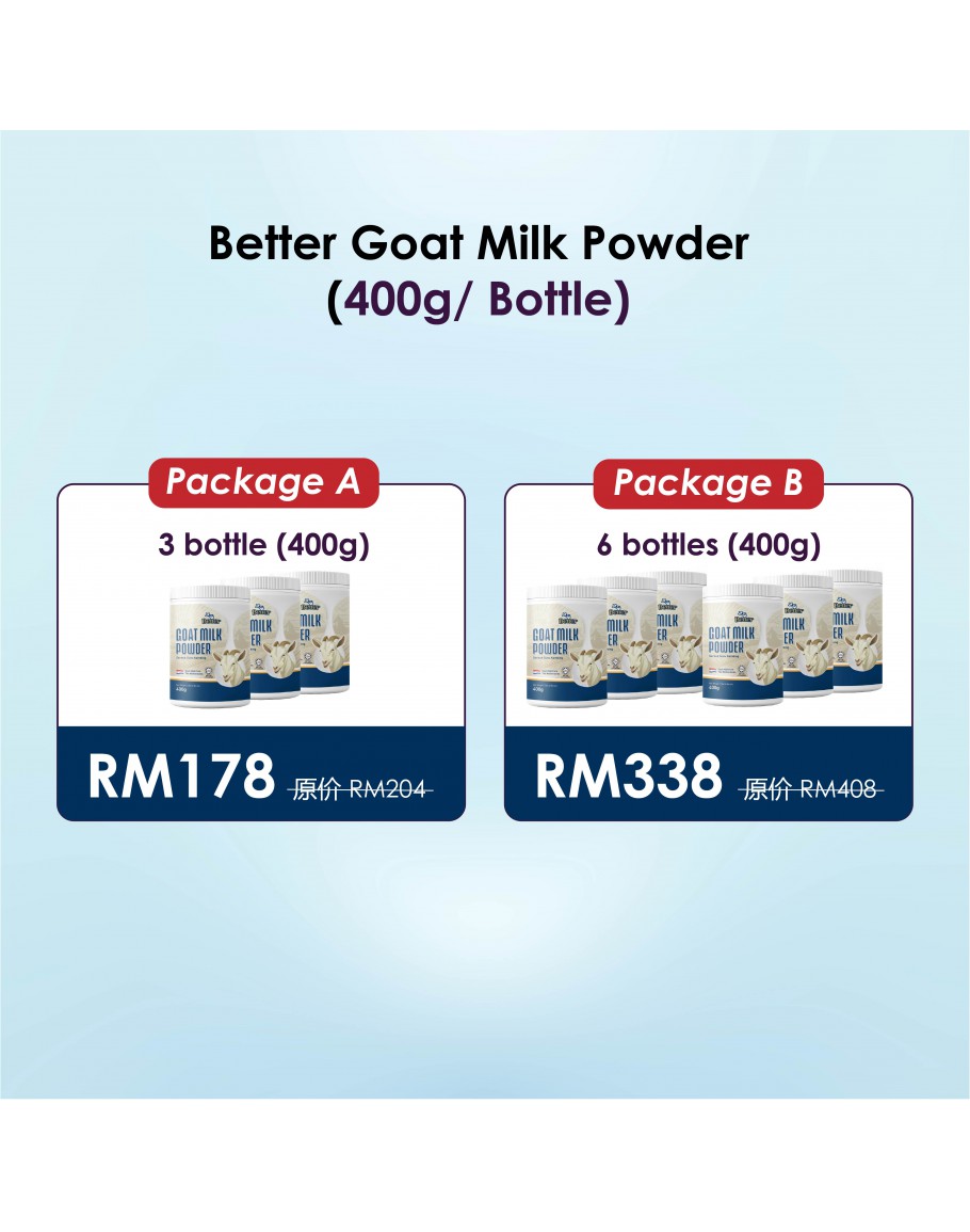 Unlock a world of nourishment with Better Goat Milk Powder – a delightful alternative to traditional cow’s milk. Discover the gentle richness, superior digestibility, less allergenic and heightened nutrient profile that sets goat’s milk apart, offering a natural choice for those seeking a wholesome and easily digestible dairy option especially among the older adults.