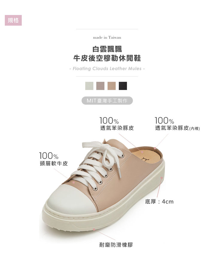 Product Code: Brunii 白雲飄飄牛皮後空穆勒休閒鞋
