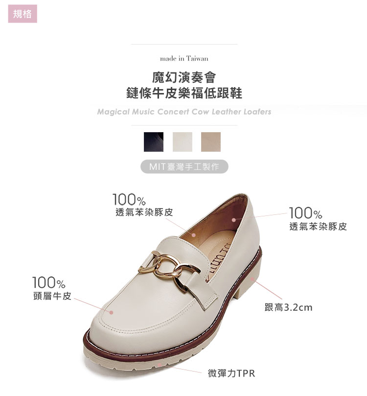Product Code: Brunii魔幻演奏會鏈條牛皮樂福低跟鞋