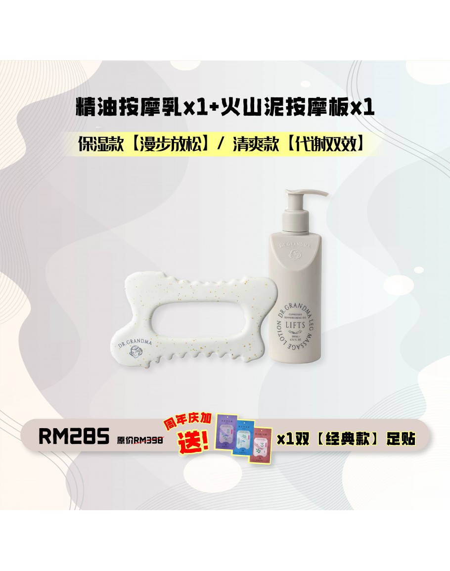 Grandma 火山石推拿按摩板 + 精油按摩乳1入 Free 經典款足貼1pc