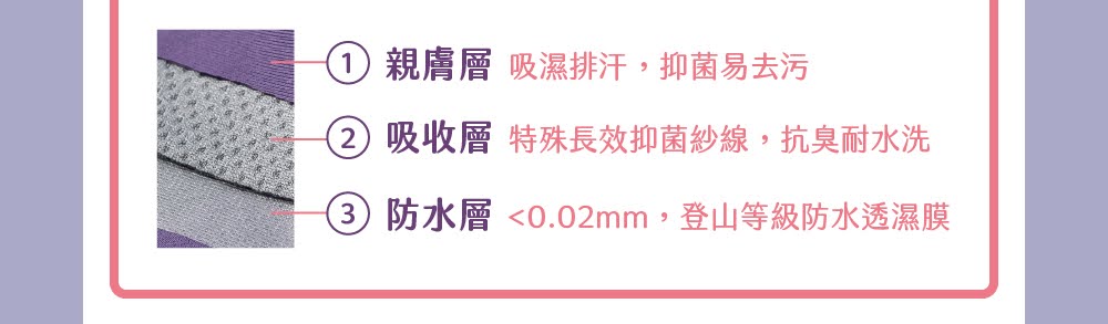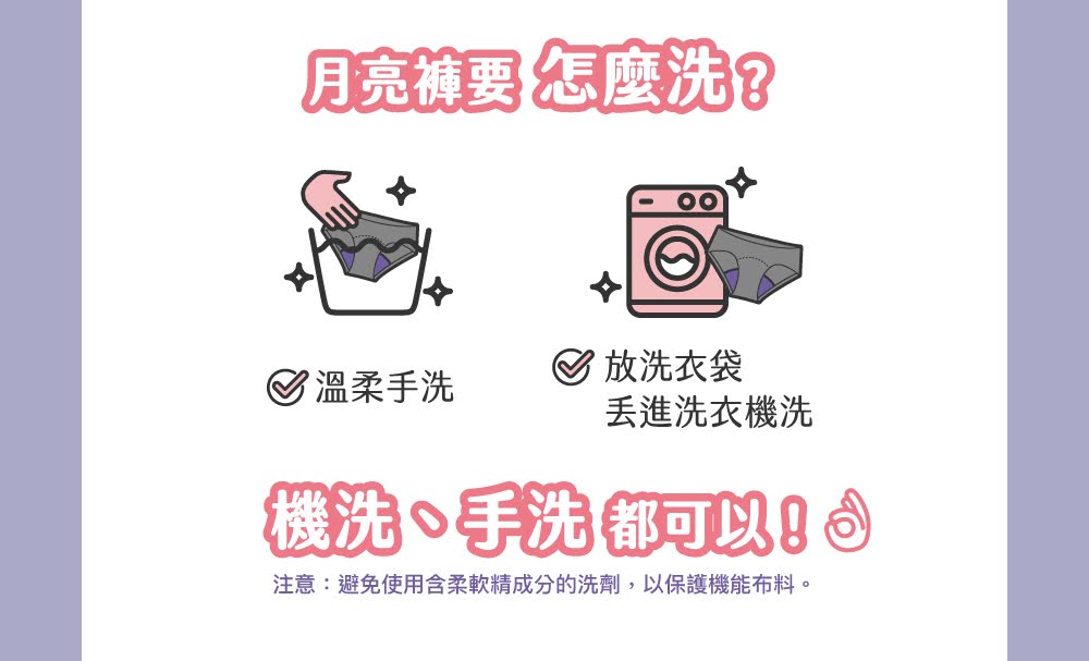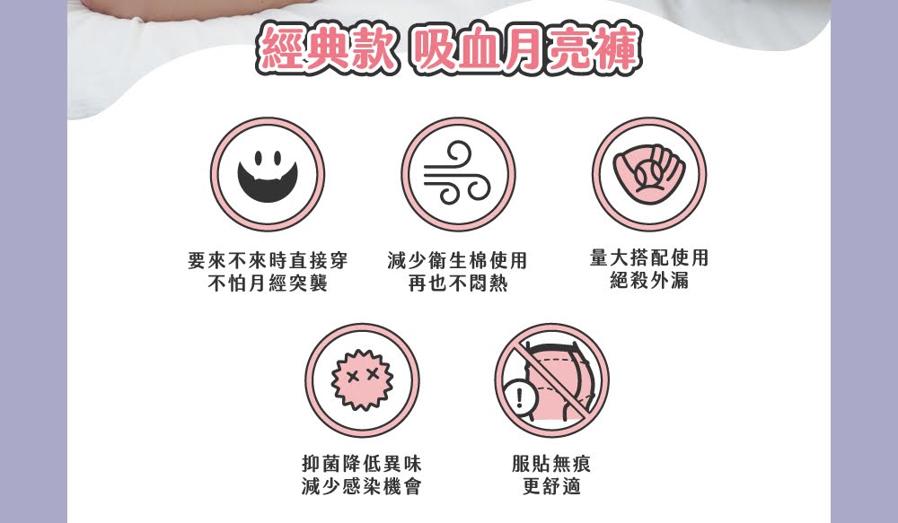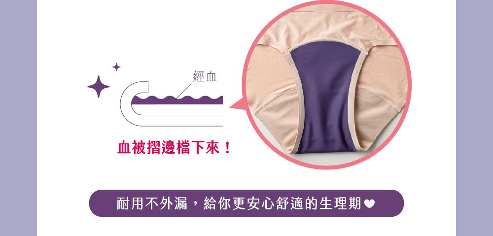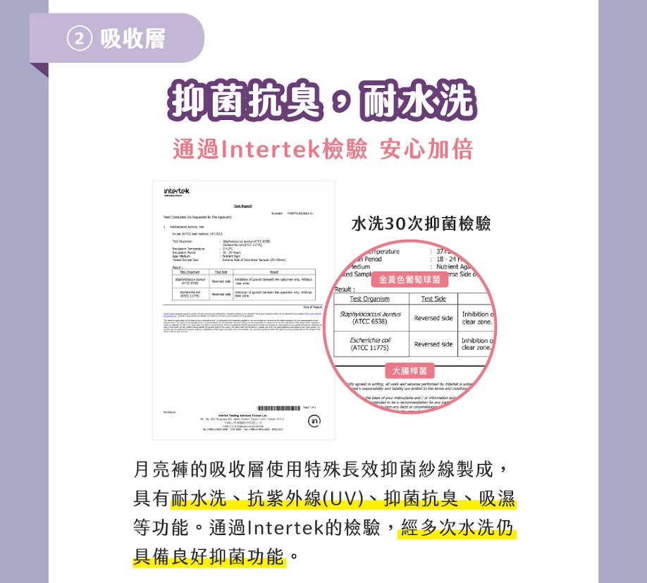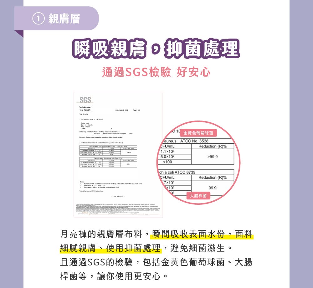 A:月亮褲的材質有做快乾抑菌處理,故不會有異味及感染問題,且都有通過SGS檢驗。