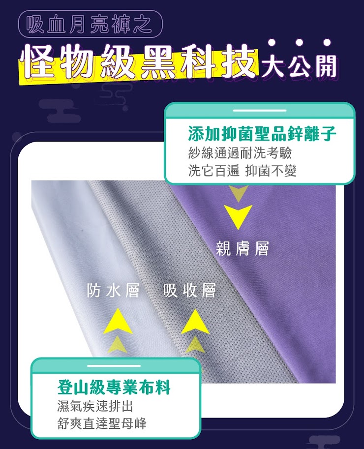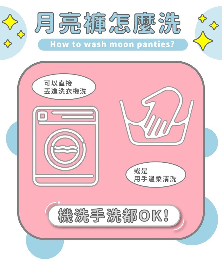A:月亮褲的材質有做快乾抑菌處理,故不會有異味及感染問題,且都有通過SGS檢驗。