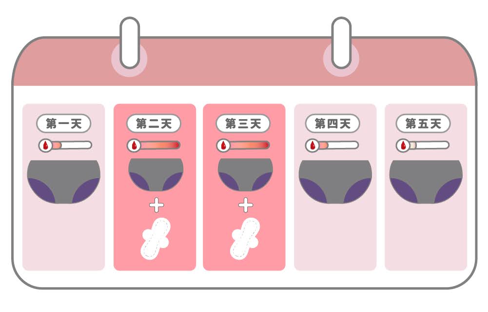 A:量少的幾天可以不用更換穿一整天,量多的時候則需要更換,大約一天需要2-3件,視個人的量而定。