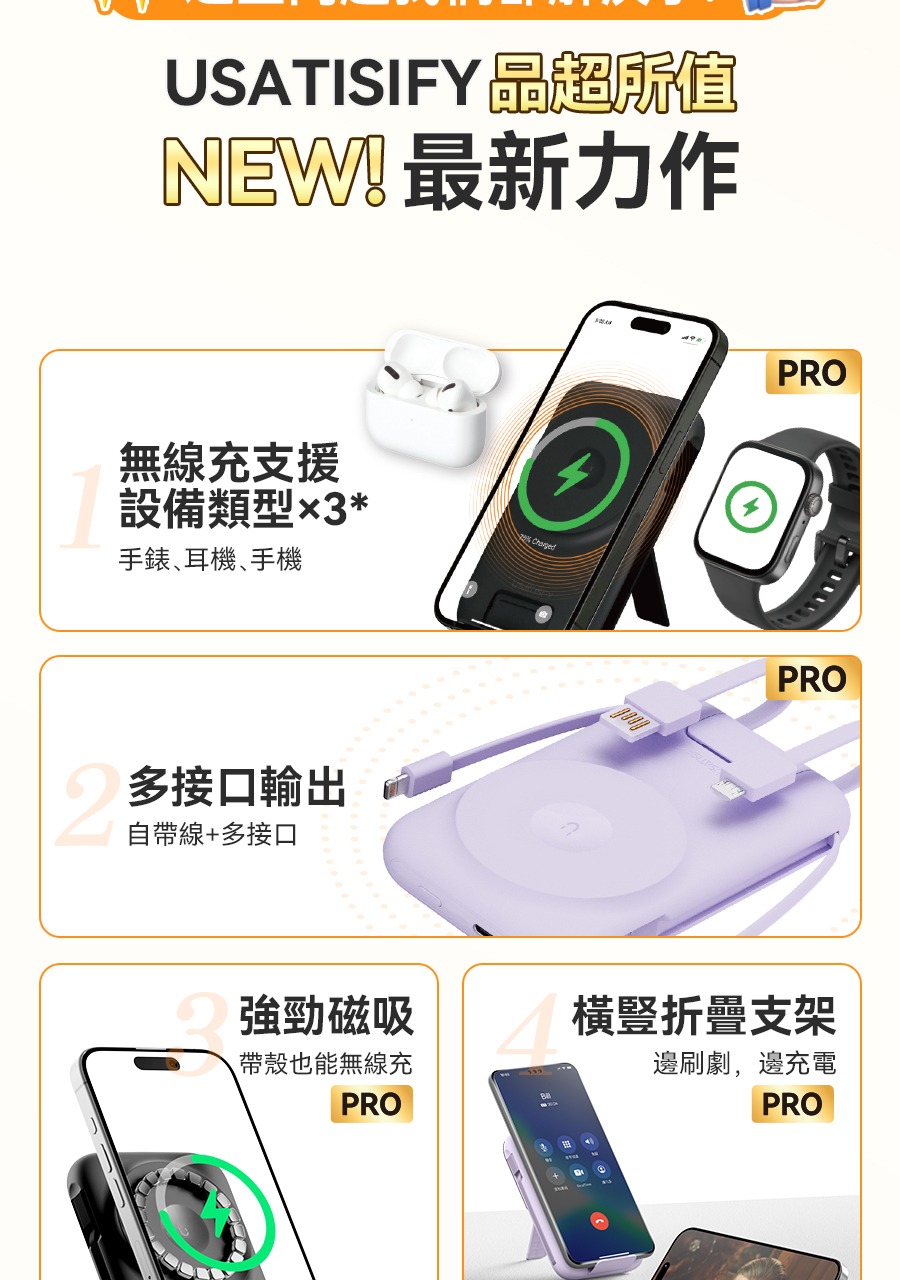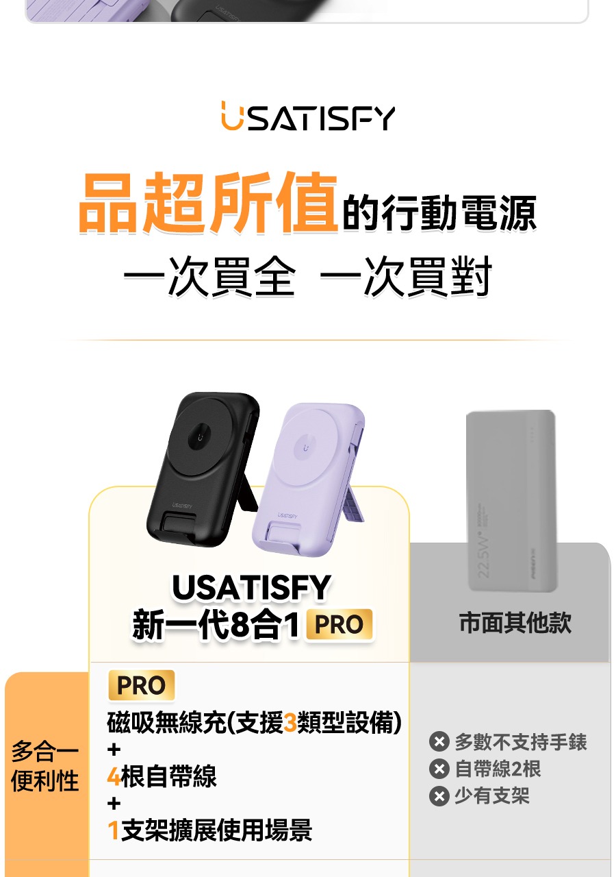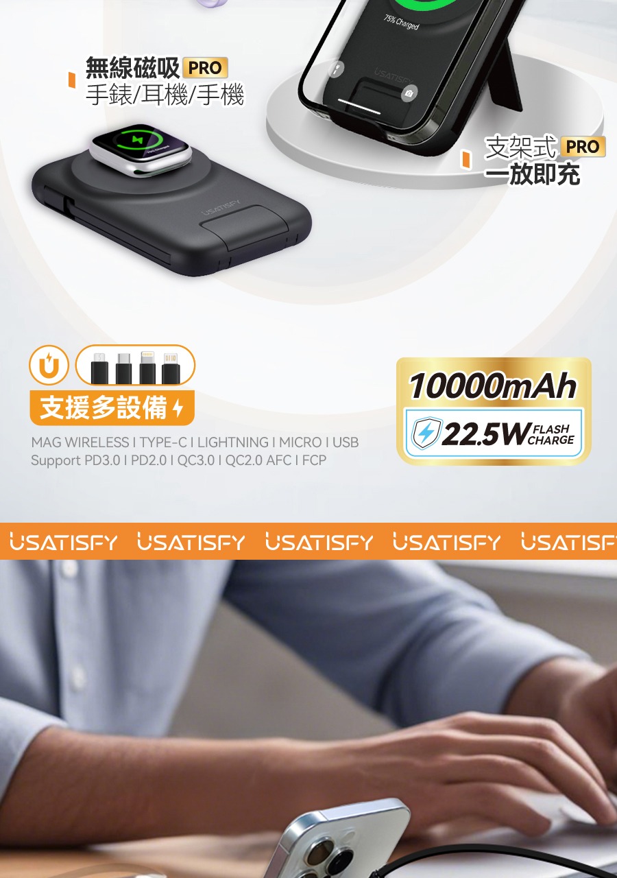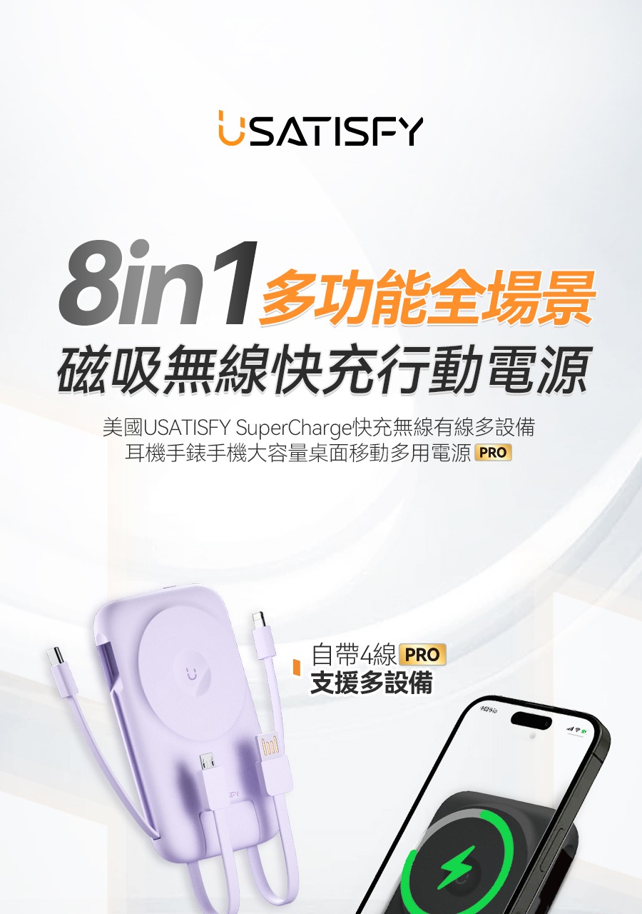 USATISFY 磁吸多頭8in1超薄支架式行動電源 PRO 【預計1月中發貨】