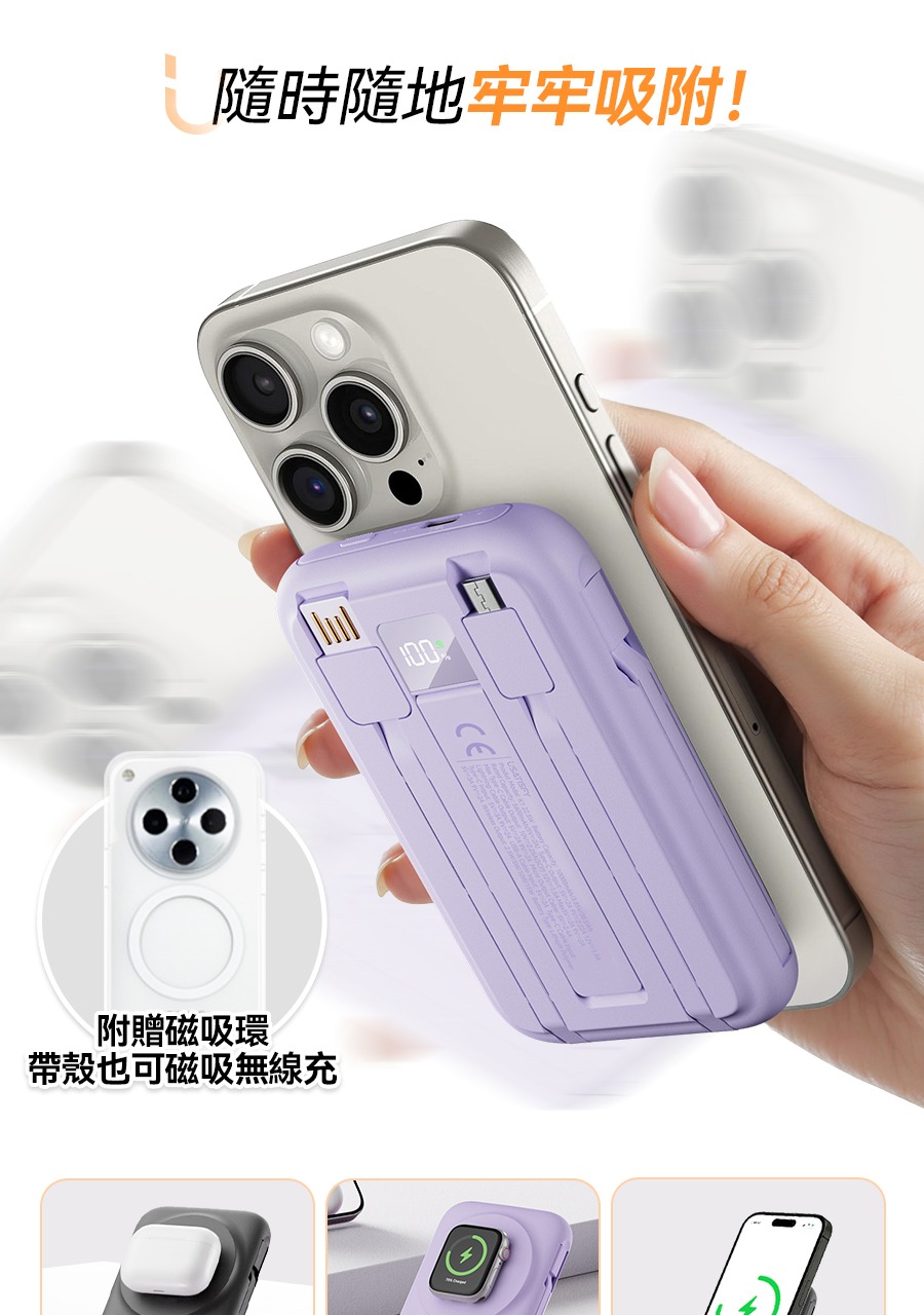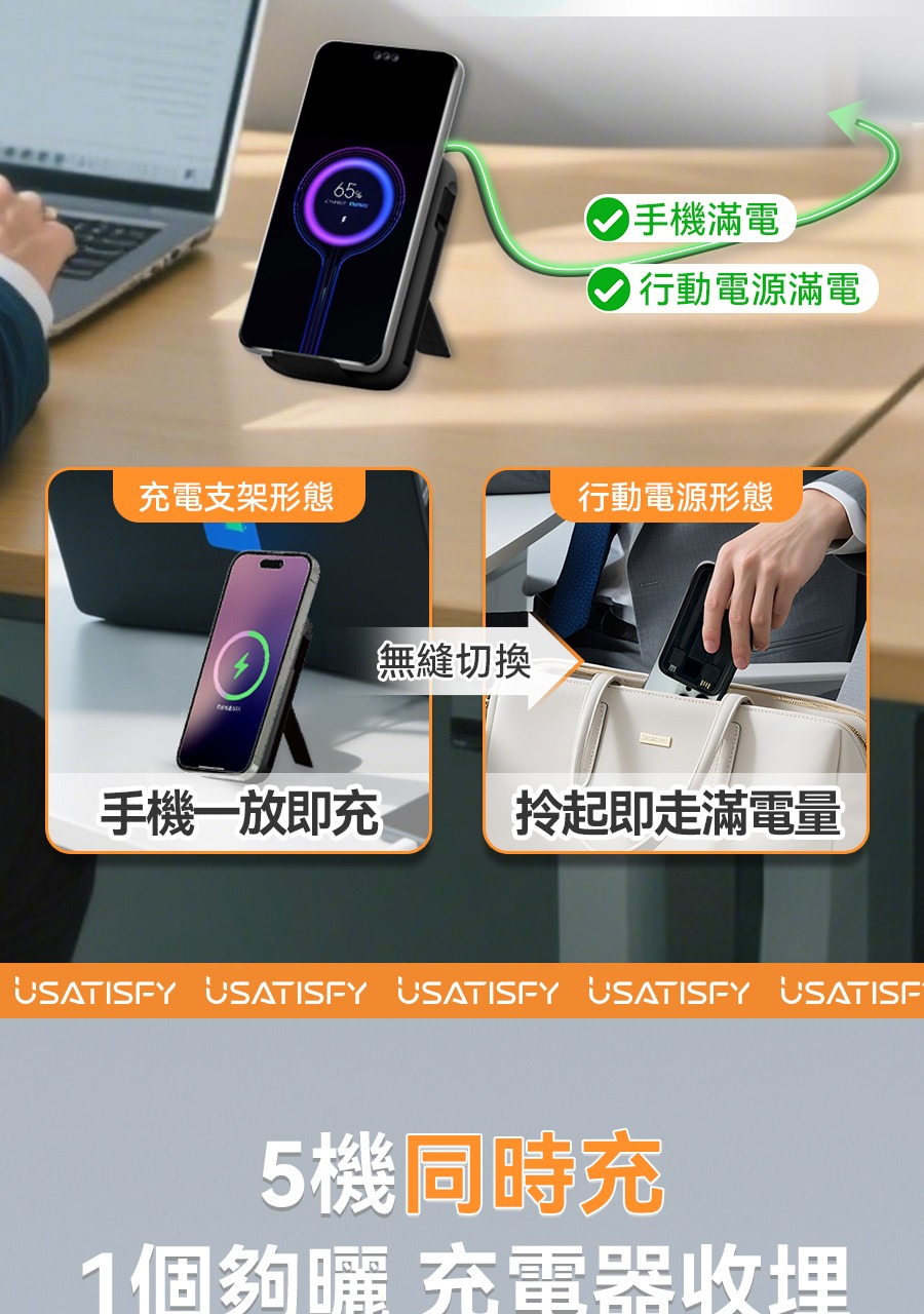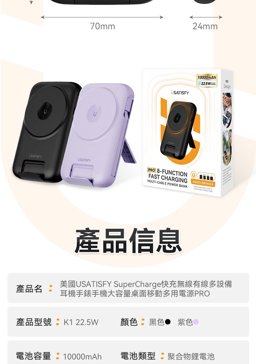 USATISFY 磁吸多頭8in1超薄支架式行動電源 PRO 【預計1月中發貨】