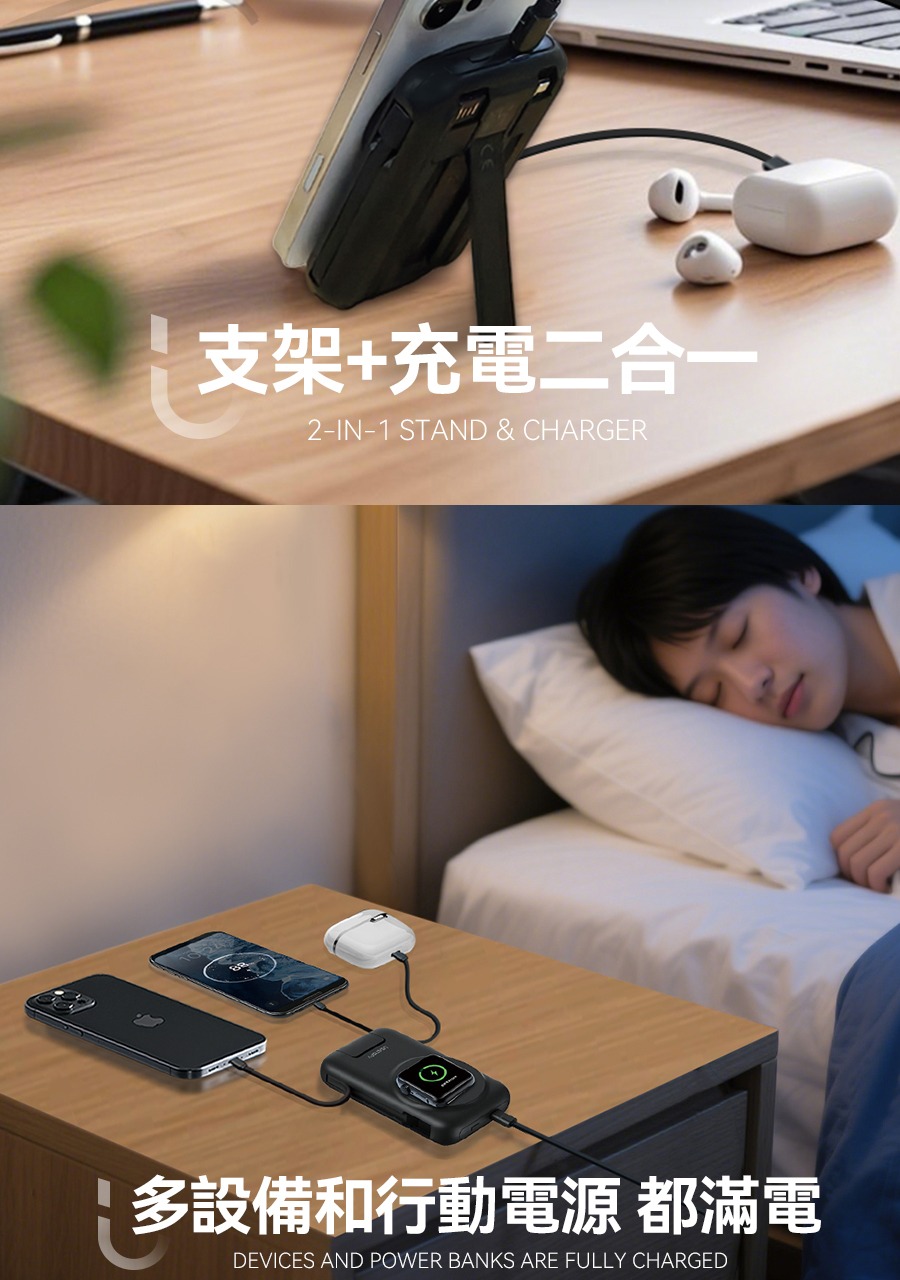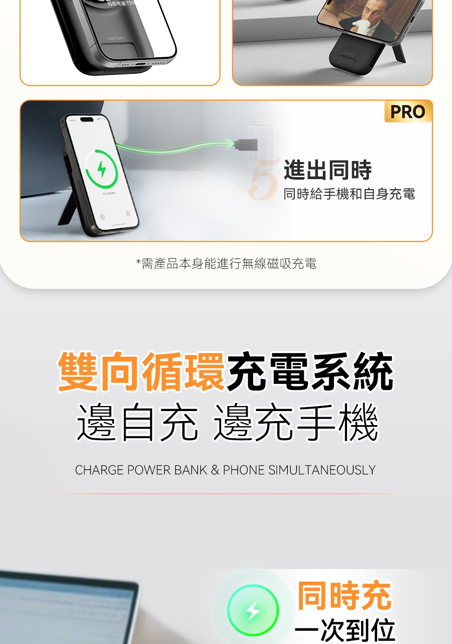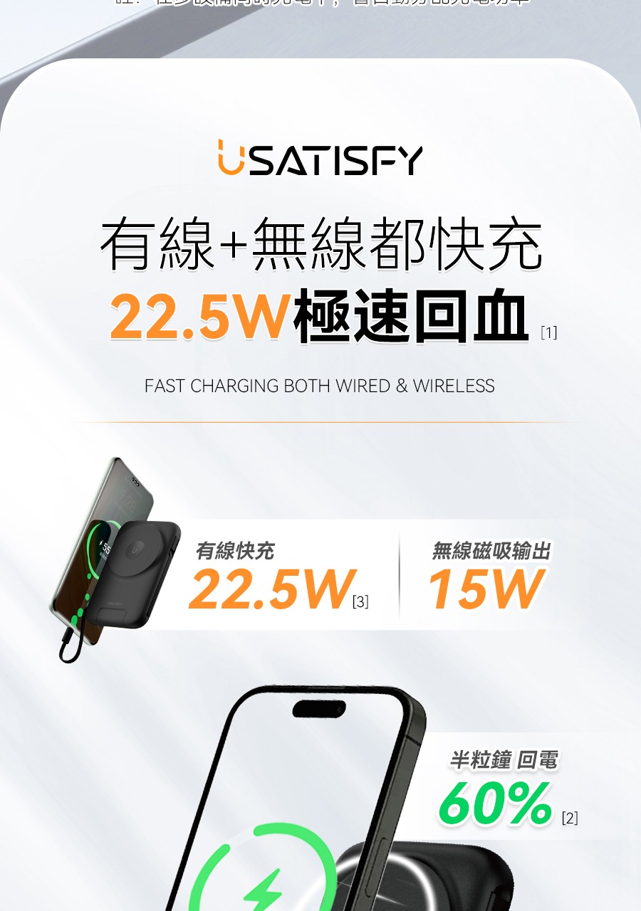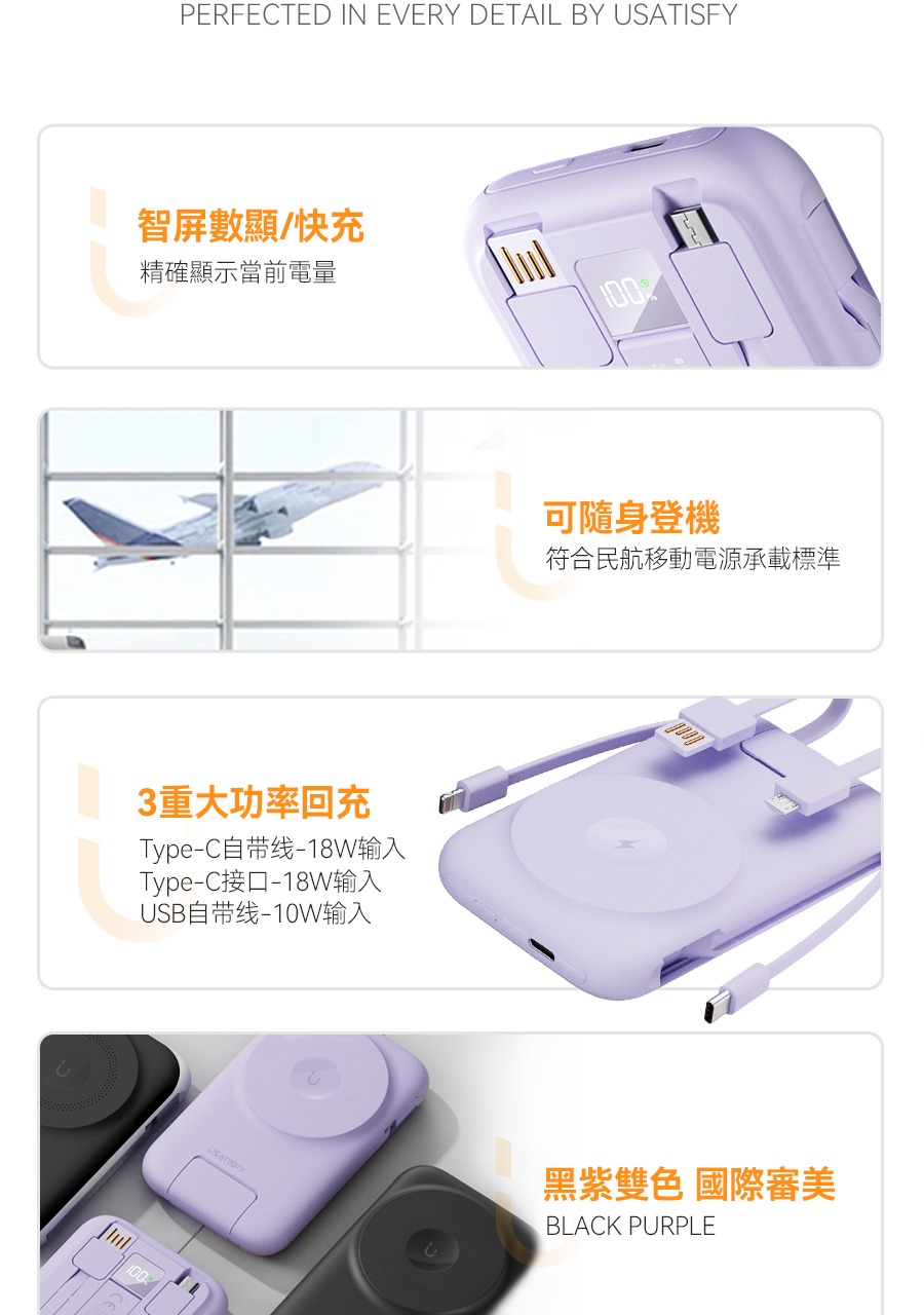 USATISFY 磁吸多頭8in1超薄支架式行動電源 PRO 【預計1月中發貨】