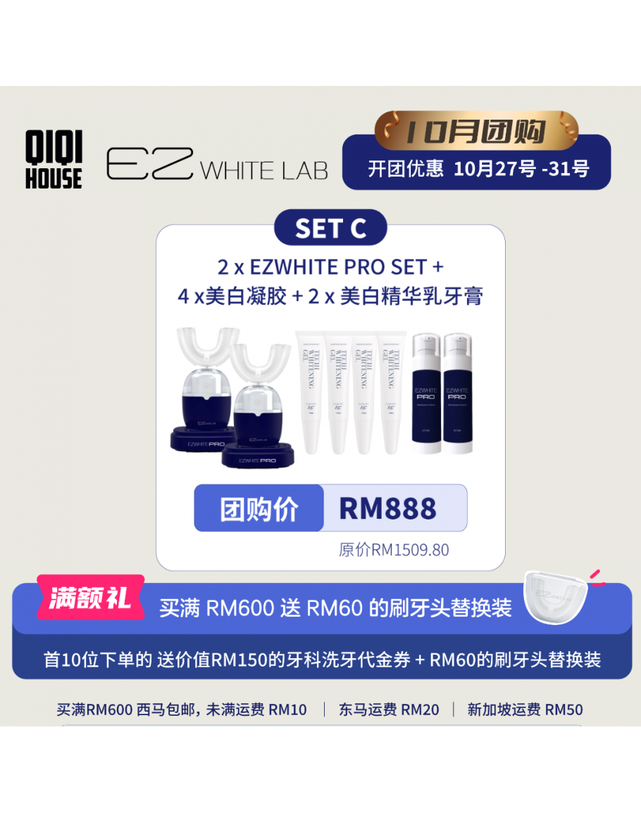 EZWHITE PRO SET 2套 + 美白凝胶 4入+ 美白精华乳牙膏 2入