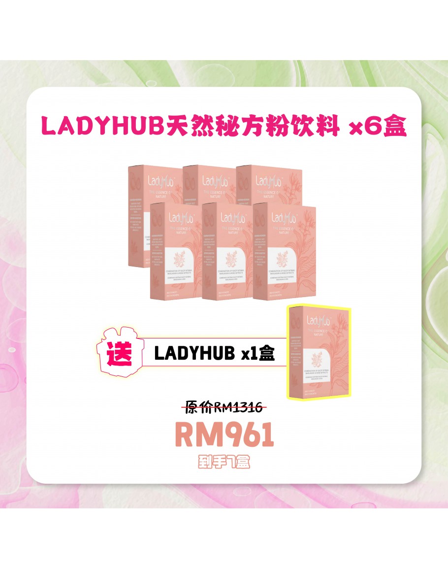 LadyHub consists of 100% natural plant extracts - Kacip Fatimah, Manjakani, Mirifica, Lobata, Soy Isoflavones, jus beri and 5 types of fresh fruits. It helps to activate body cells, increase & stabilize immune system, repairs body cells, promotes skin cells regeneration against anti-aging, reducing wrinkles and maintains youthfulness.