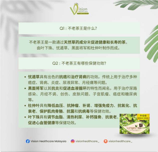 忧遁草 ( U Turn 草)意思为「让⽣命U Turn,延续⽣命」,抗癌及治疗肾病功效卓越,