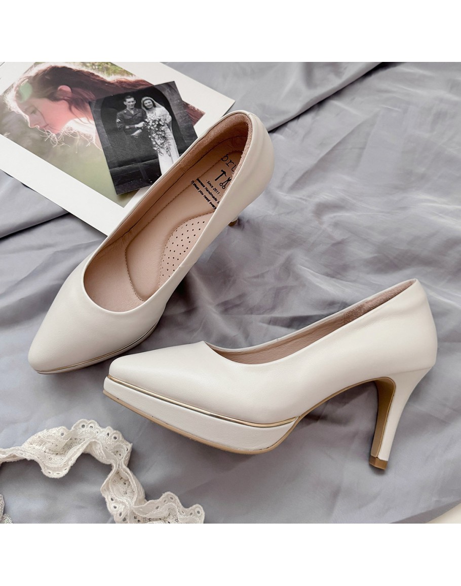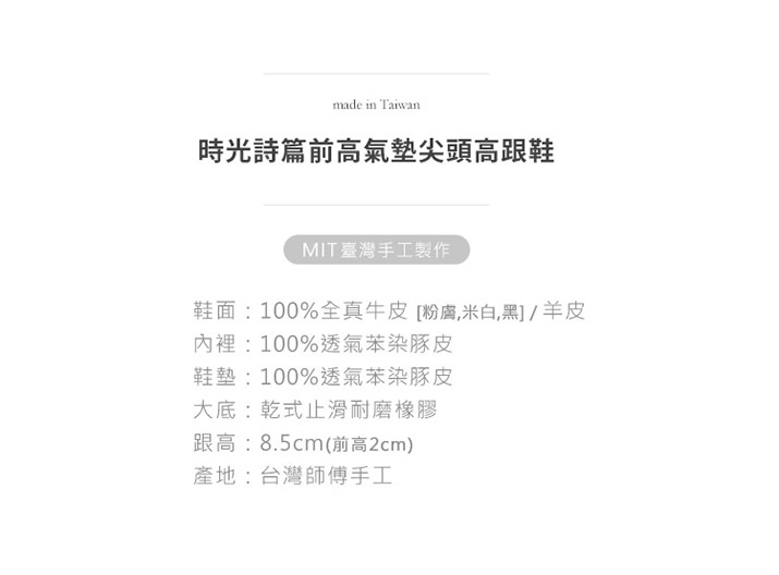。前高2cm,後跟8.5cm,中跟體感。選用特殊高級真牛皮/羊皮。日常也可穿搭的氣墊婚鞋。臺灣老師傅手工製作