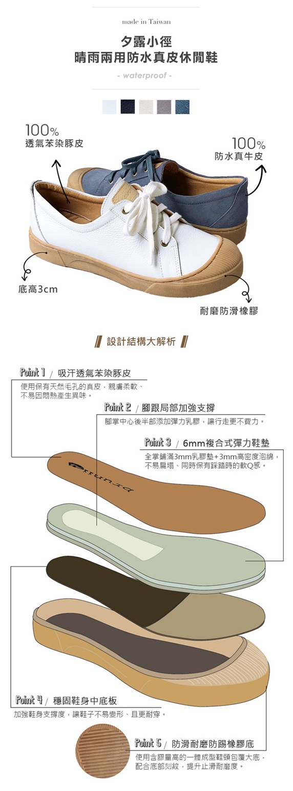 Product Code: Brunii 夕露小徑晴雨兩用防水真皮休閒鞋